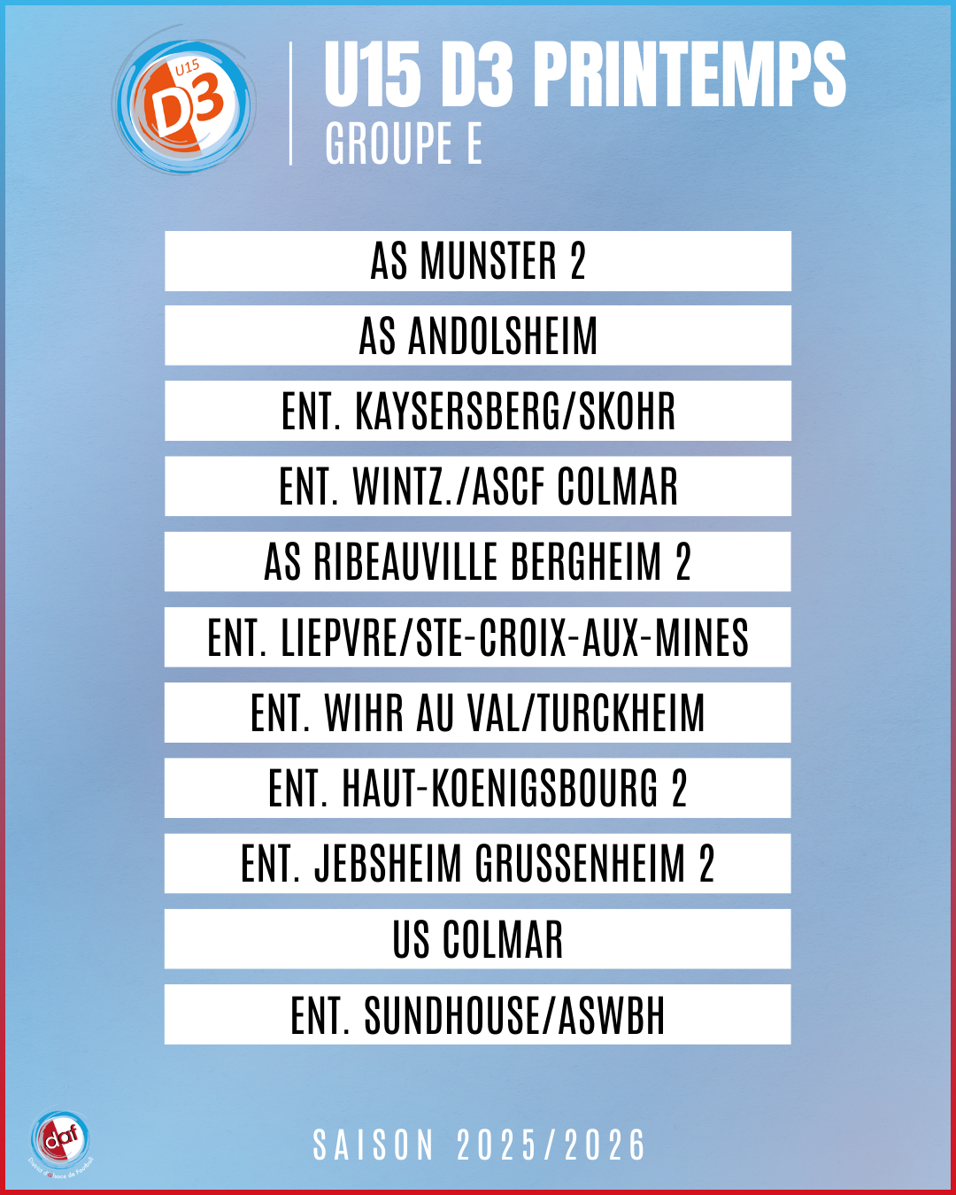 GROUPES U15 D3 PRINTEMPS – SAISON 2025/2026