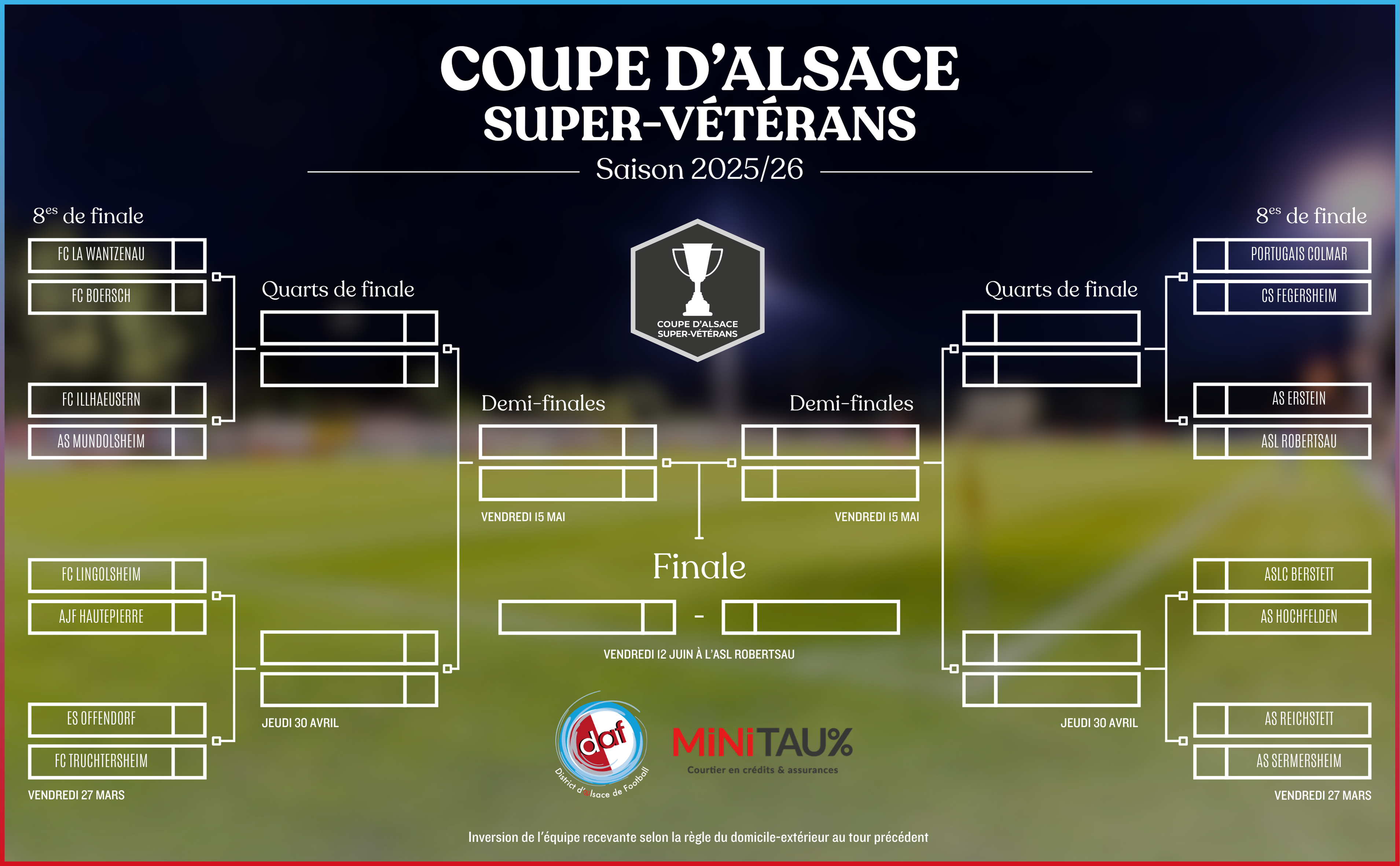 Les affiches des 8es de finale de la coupe d’Alsace super-vétérans