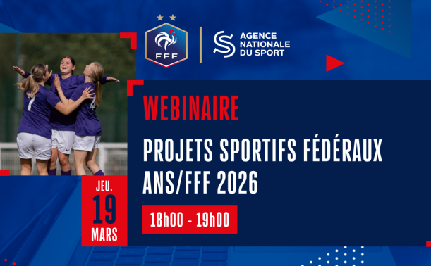 La campagne de subventionnement du dispositif « Projets Sportifs Fédéraux 2026 » de l’Agence Nationale du Sport sera lancée prochainement. Afin de s’y préparer, la Fédération Française de Football organise un webinaire sur ce sujet le jeudi 19 mars de 18h à 19h.