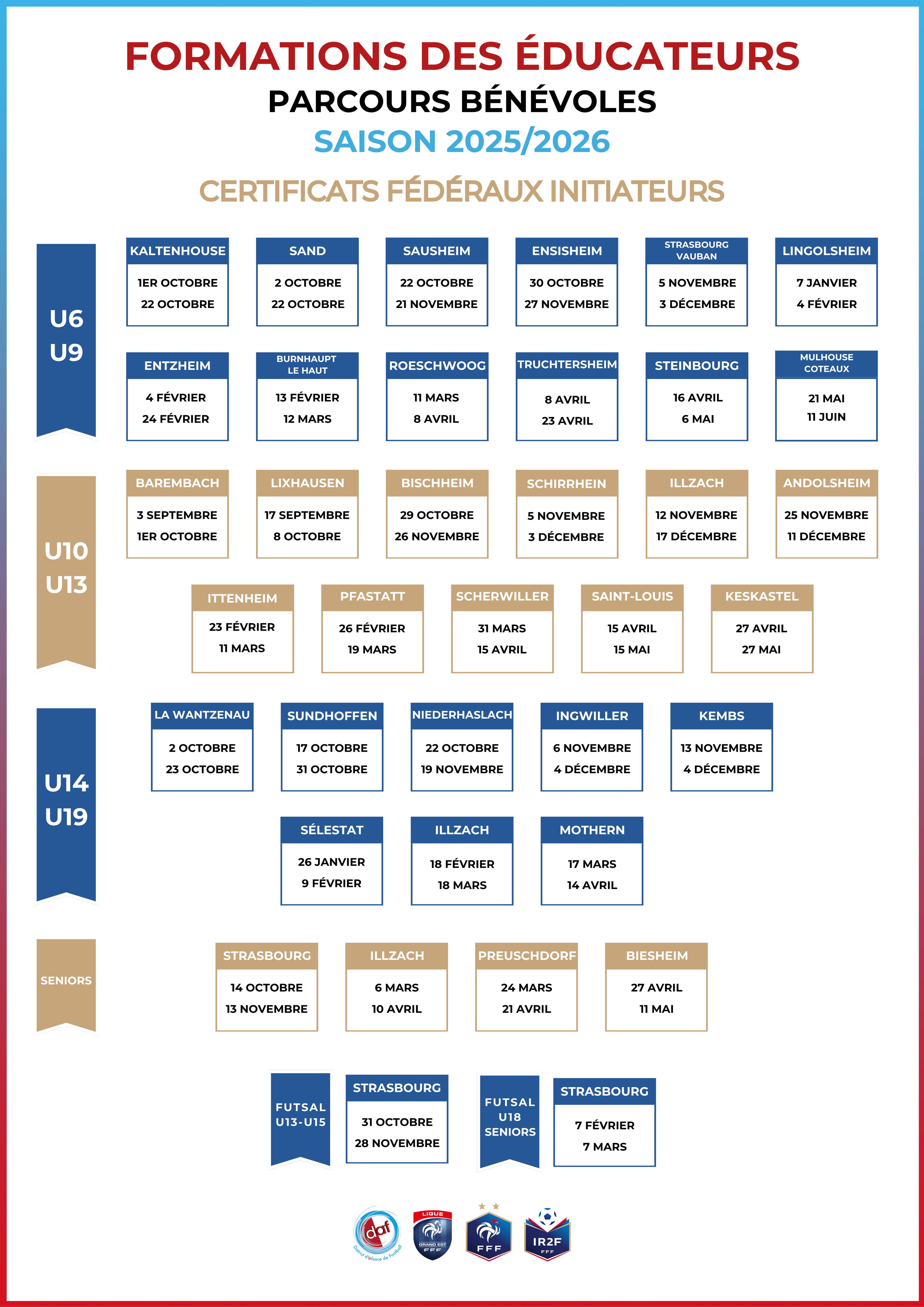 Retrouvez ici l’ensemble des éléments, afin de faciliter votre inscription aux formations des éducateurs(trices), parcours bénévole, proposées par le District d’Alsace de Football tout au long de la saison 2025/2026 à l’échelle de l’Alsace.