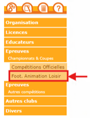 - Pour les critériums futsal (U7/U7F, U9/U9F, U11/U11F, et U13 D2 à D4 et U13F D2), il faut sélectionner le module « Foot Animation Loisir » pour accéder au choix des épreuves.