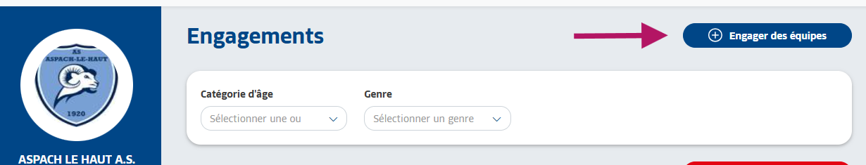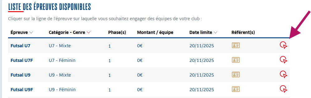 /!\ Les clubs organisateurs de plateaux doivent également engager leurs équipes manuellement.